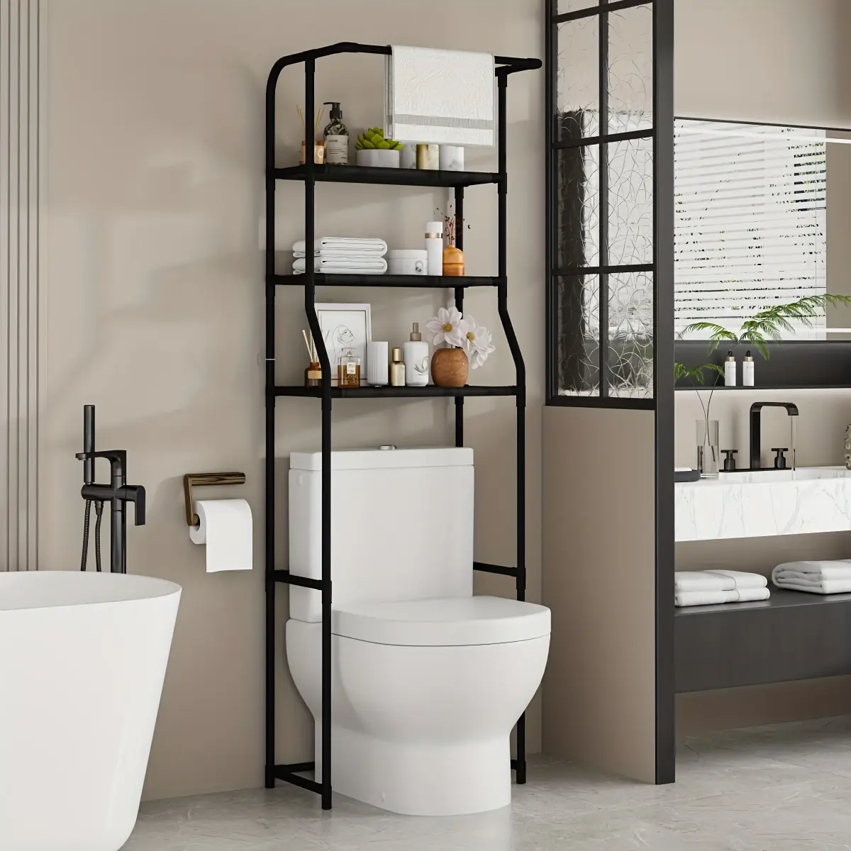 1pc Classic Black Metal Over-the-Toilet Storage Rack