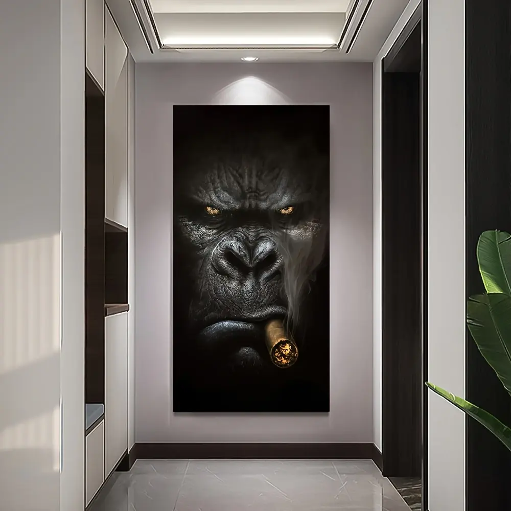 1pc Frameless Modern Abstract Gorilla Smoking Wall Art Canvas Painting, 59.99x119.99cm