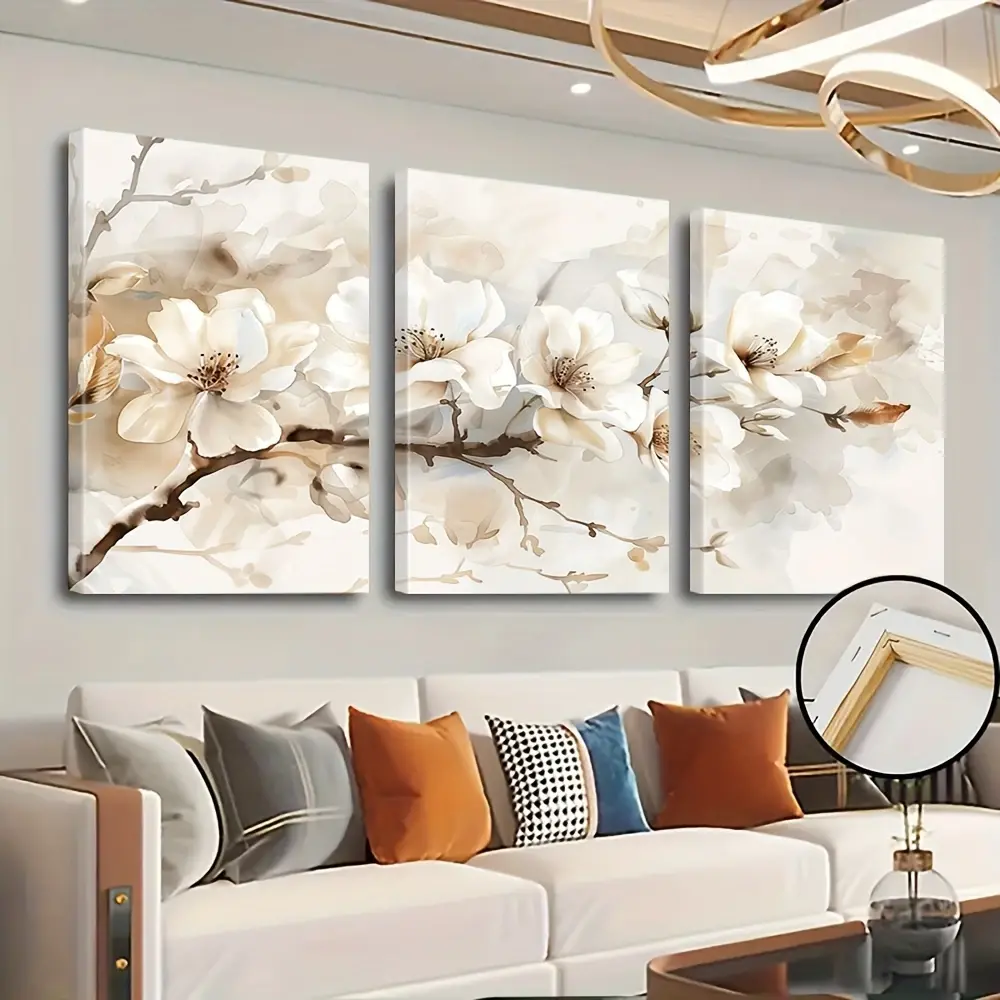 3pcs Art Deco Modern Abstract Magnolia Flower Canvas