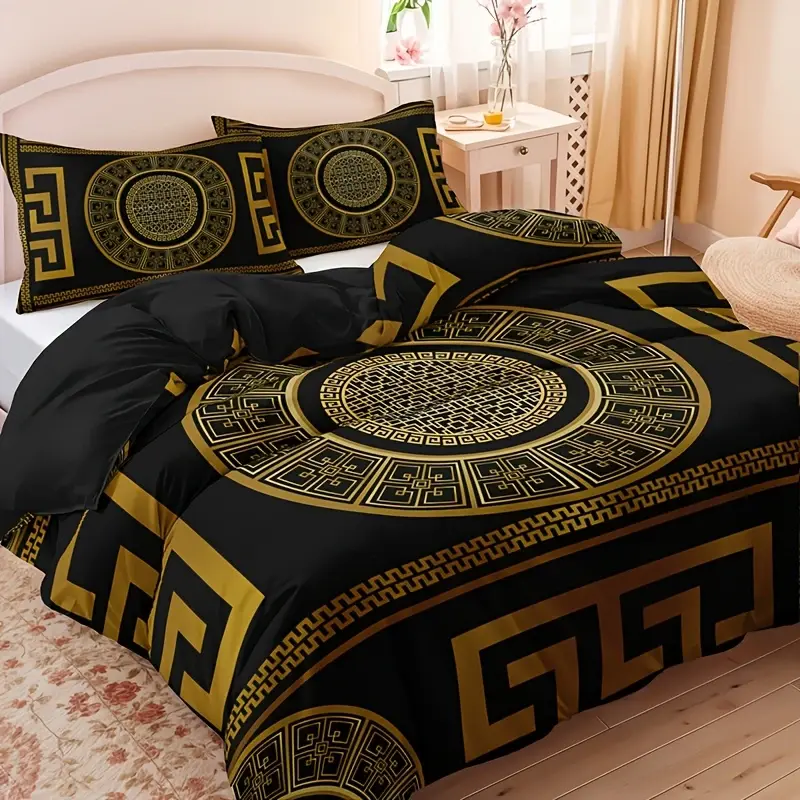 (1 Duvet Cover + 2 Pillow Covers) - All-Season Polyester, Digital Print with Golden Compass Design, Machine Washable, Dorm Room Decor, Dorm Room Decor|Vintage Compass Design|Polyester Fabric, Vintage Home Decor