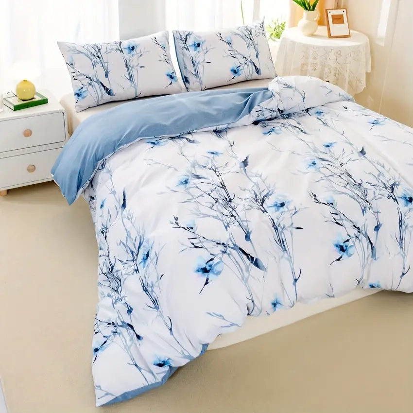 Blue Branches Design, Soft Microfiber Bedding With 1 Duvet Cover And 2 Pillowcases - Home Bedroom Decor