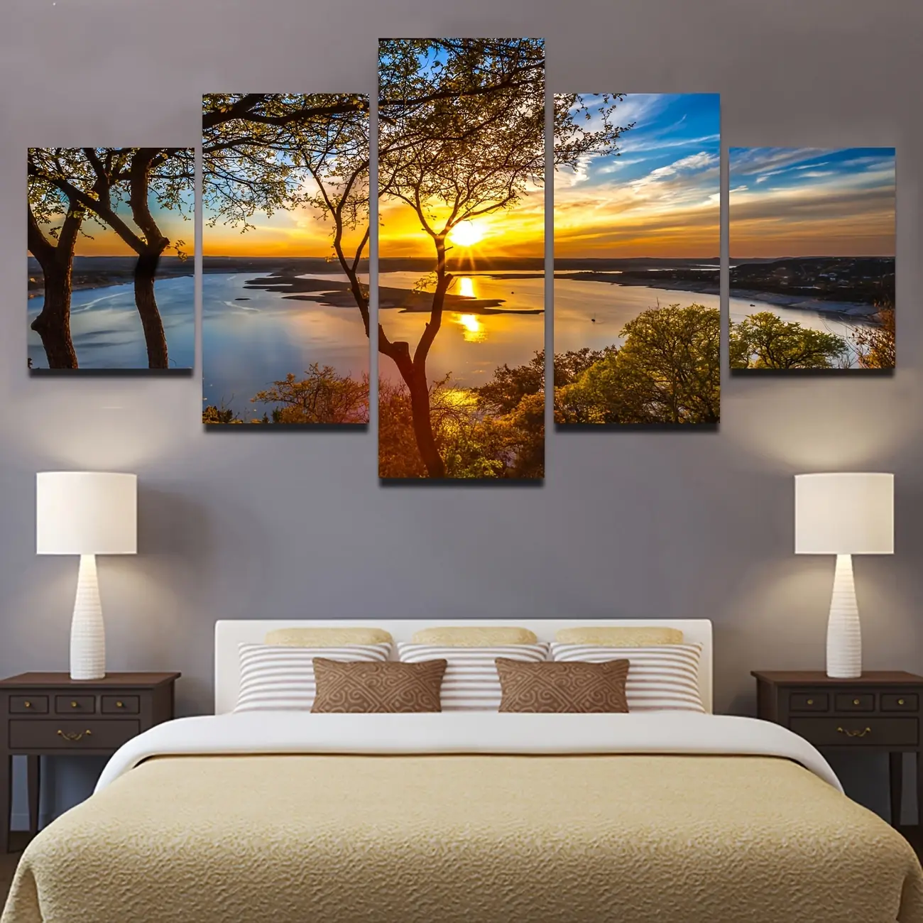 5-Panel Sunrise Landscape Canvas Wall Art