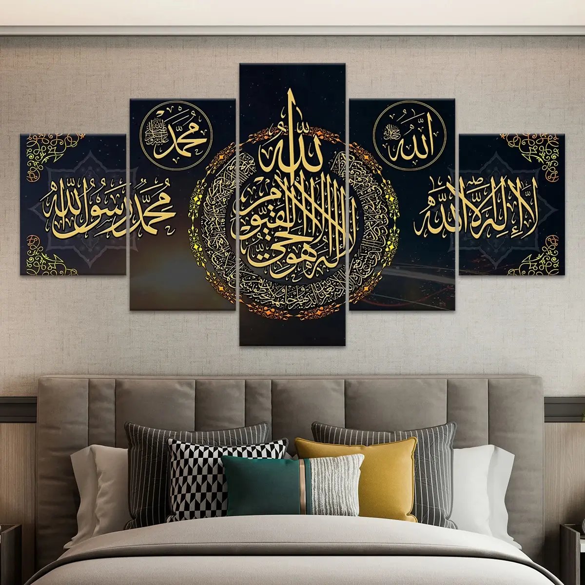 5pcs Classic Arabic Calligraphy Wooden Framed Canvas Art Set