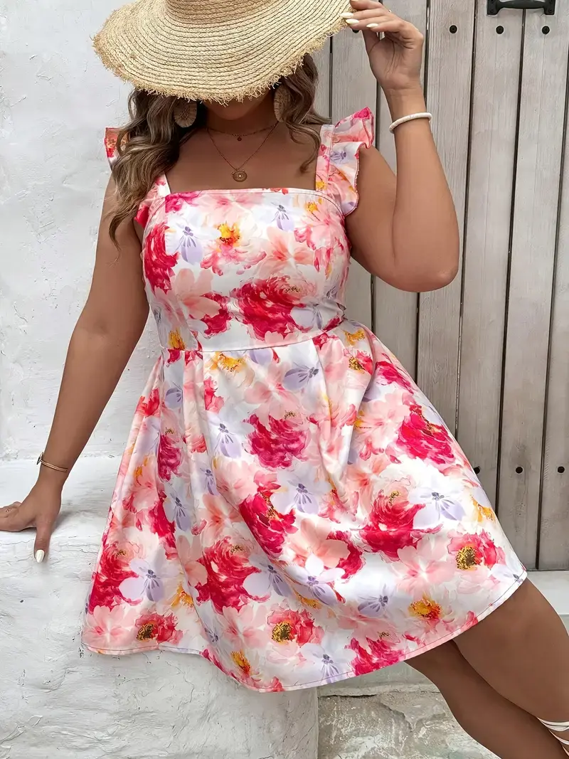 Bohemian Floral Print Backless Dress with Ruffled Hem & Bow Detail