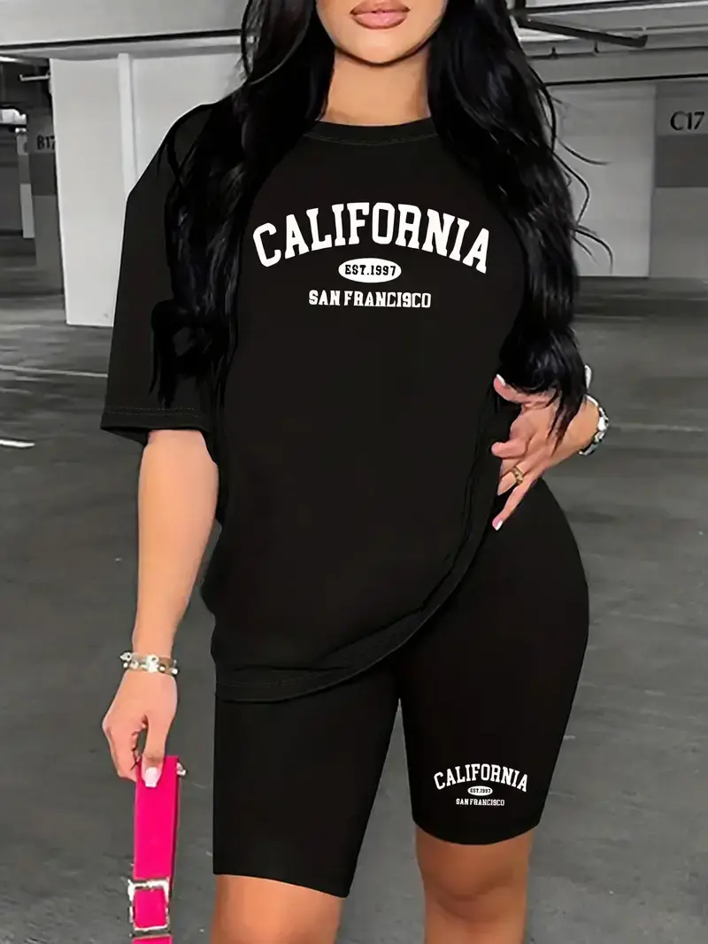 CALIFORNIA monogram print spring and summer new plus size Women's fashion pants set