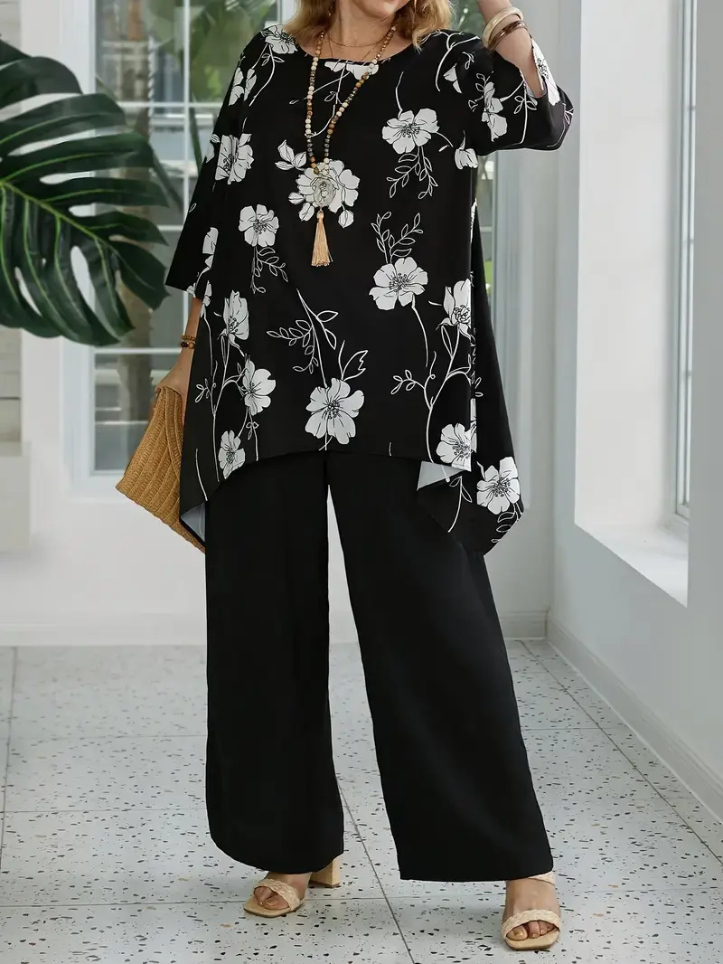 Crew Neck, Asymmetrical Hem, Loose Fit, Mid-Sleeve Top