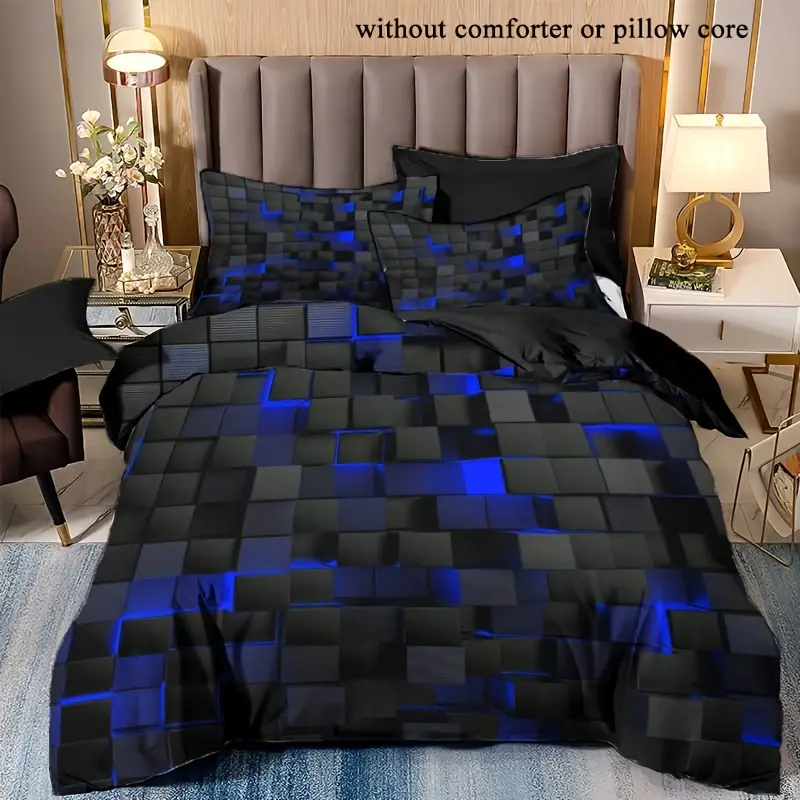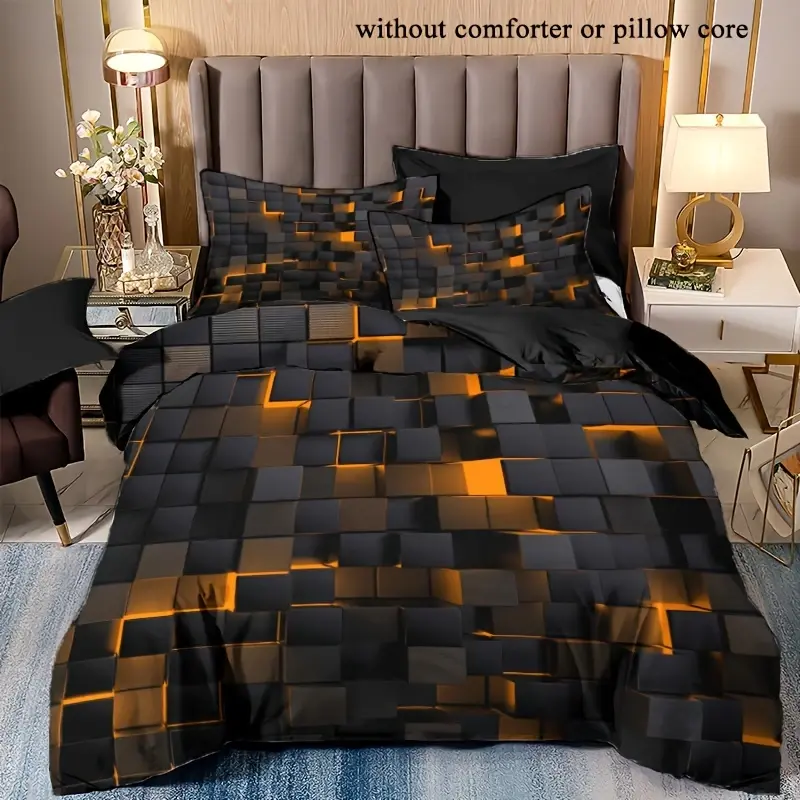 (Includes 1 Duvet Cover And 1 Or 2 Pillowcases, Core Not Included), Featuring a Red, Orange, And Blue Grid Pattern, Soft And Comfortable Bedding for Bedrooms Or Guest Rooms.