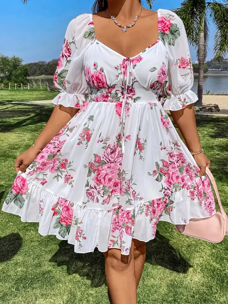 Elegant Bohemian Floral Print Maxi Dress with V-Neck and Ruffled Hem