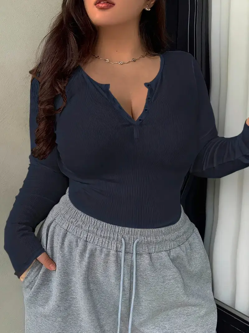 Elegant Long Sleeve V-Neck Blouse with Button Detail