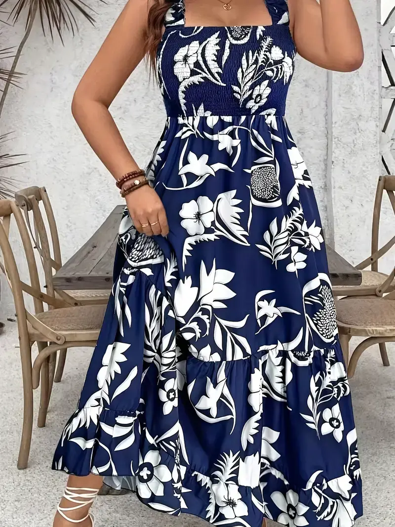 Elegant Off-Shoulder Floral Maxi Dress - Navy Blue