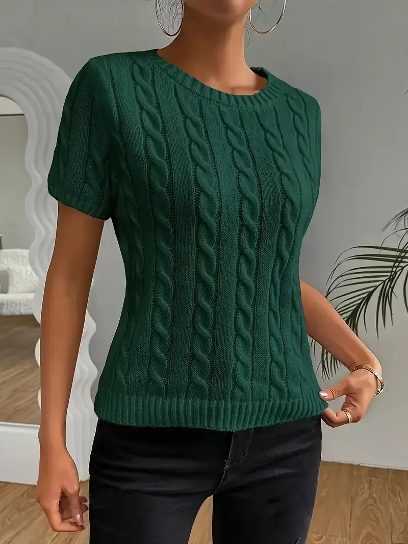 Elegant Thick- Round Neck Short Sleeve Sweater