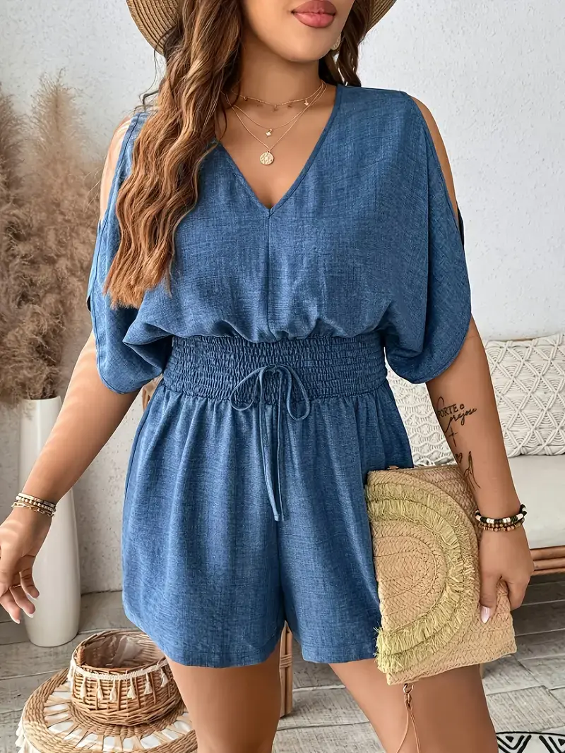 Elegant V-Neck Open Shoulder Jumpsuit with Lotus Leaf Hem