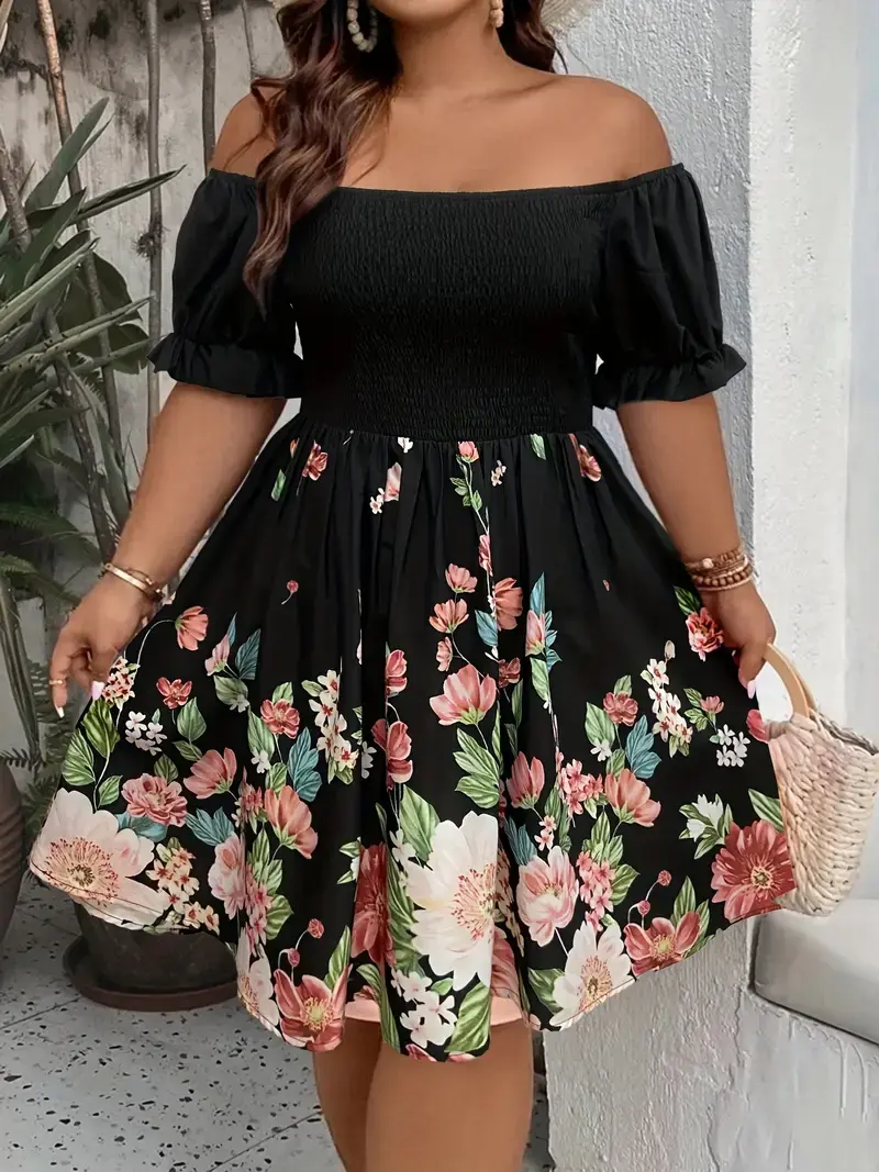 Floral Print Off-Shoulder Ruffled Sleeve Dress