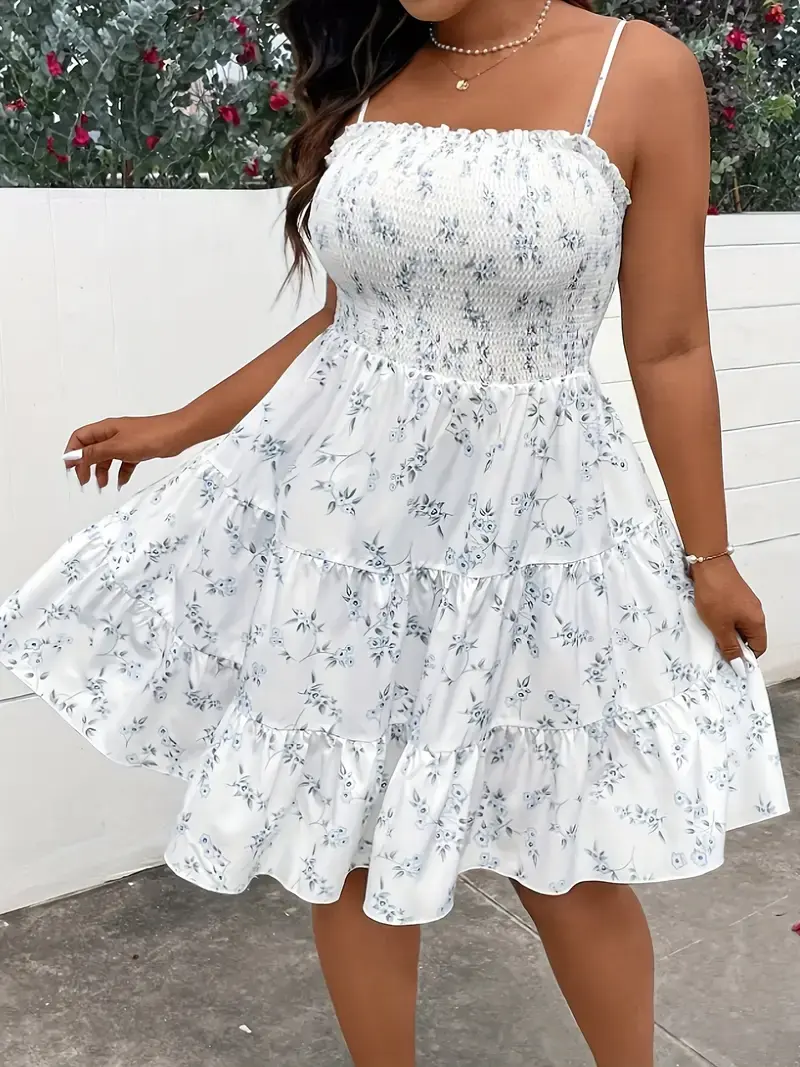 Floral Print Sleeveless Dress - Off-Shoulder Ruffled Hem