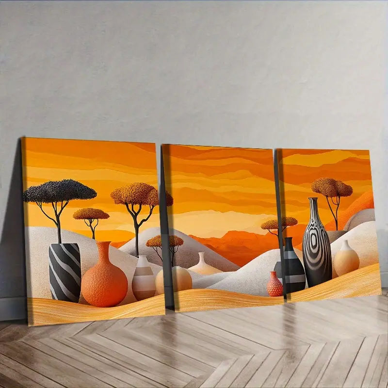 3pcs African Tree & Vase Framed Canvas Art Set - 30x40cm