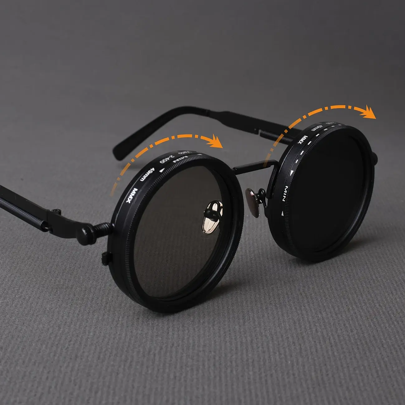Industrial Punk Style Rotating Dimmingfashion Glasses with Spring Lenses