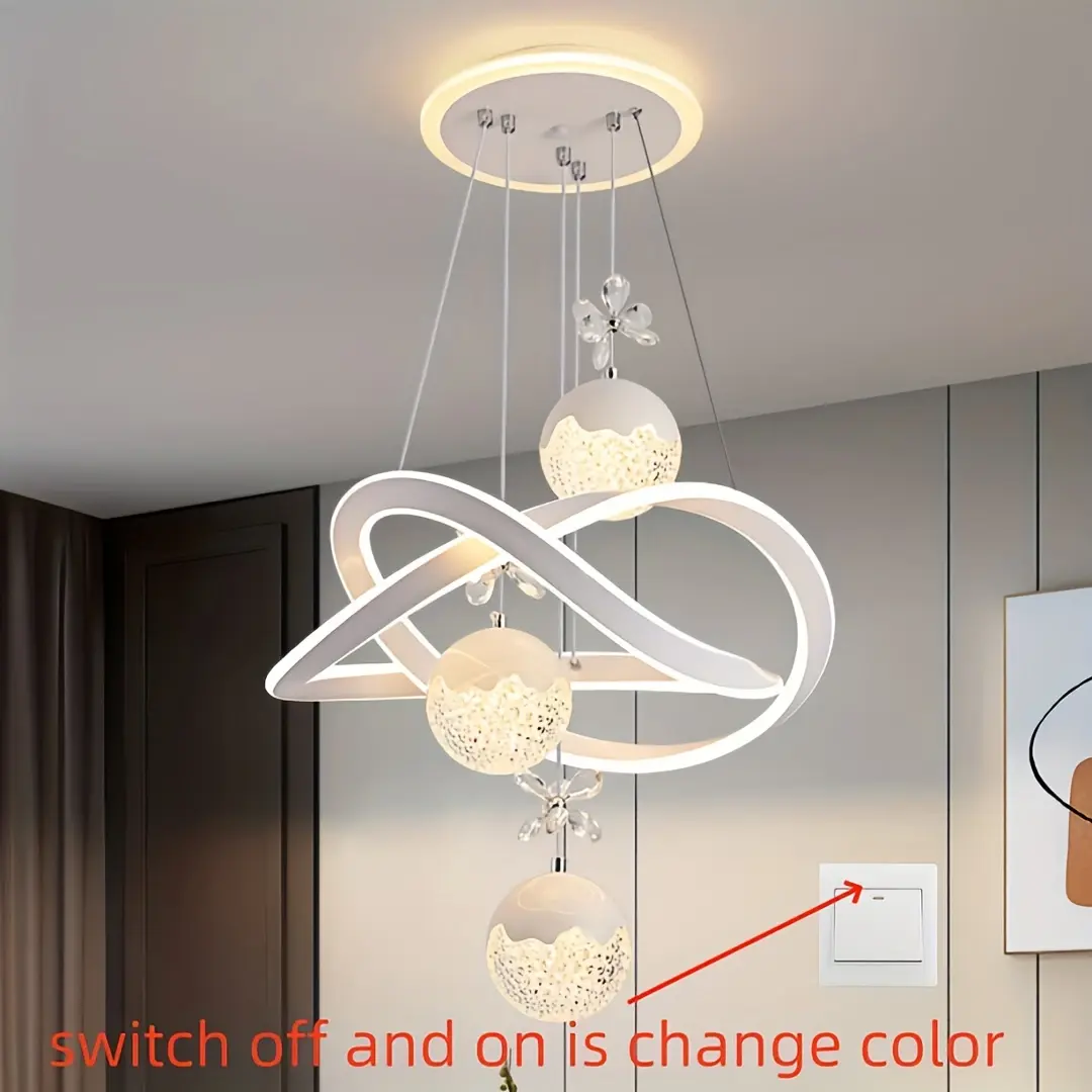 Modern 3-Light Acrylic Pendant Fixture with 3-Color Dimming (3000K/6000K/4500K)
