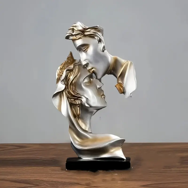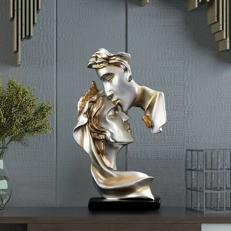 Elegant Two-Tone Kissing Figurine with Golden Accents, Black Base for Living Room or Study Decor, Decorative Sculpture | Abstract Design | Artistic Bust, Statues for Home Decor