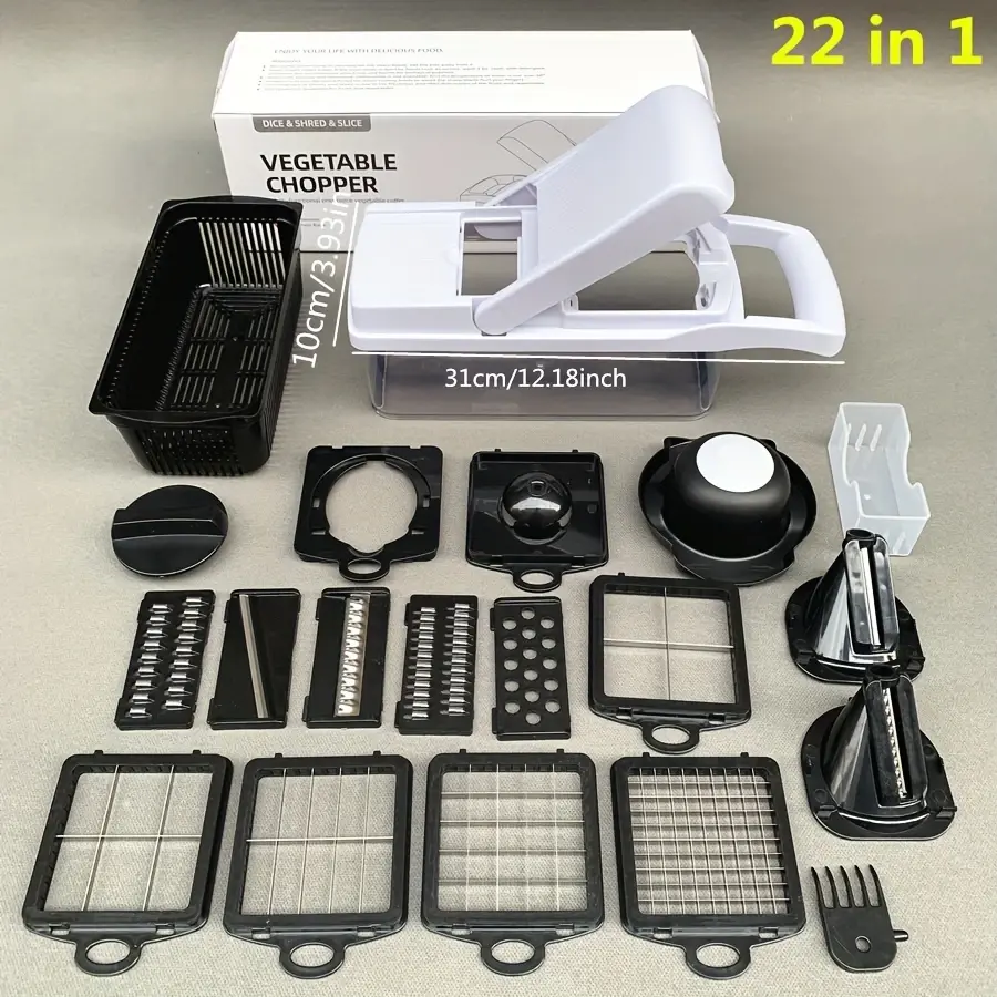 Onion Chopper, Vegetable Slicer, Mincer, Vegetable Dicer with 12 Blades, Vegetable Strainer, Salad Potato And Carrot Dicer, Garlic Container Chopper.
