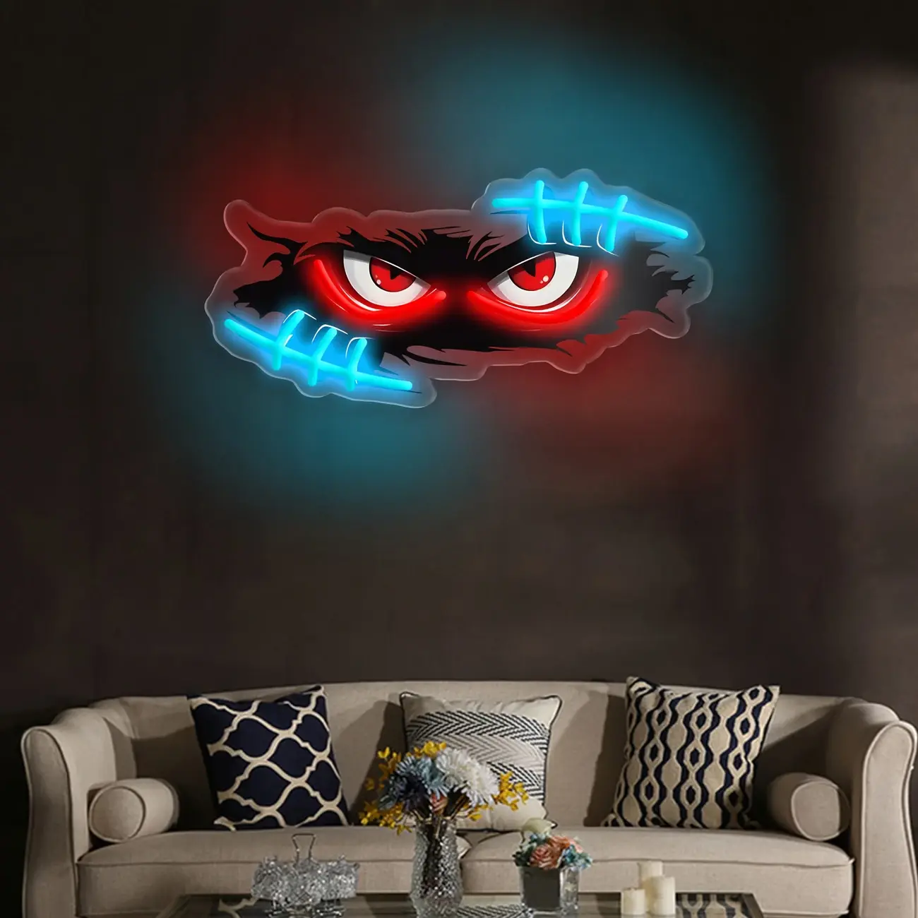 Vibrant Neon Eye Design LED Wall Art – USB-Powered Blue & Red Light Accent