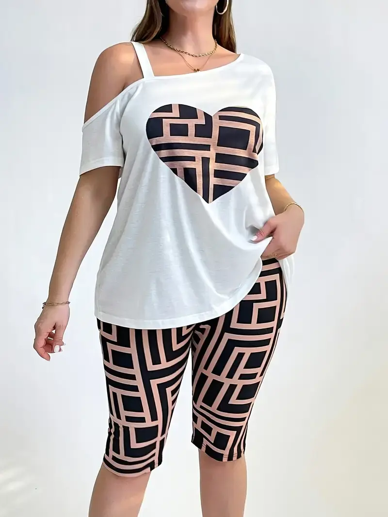 Women's Casual Loose Fit Heart Print Two-Piece