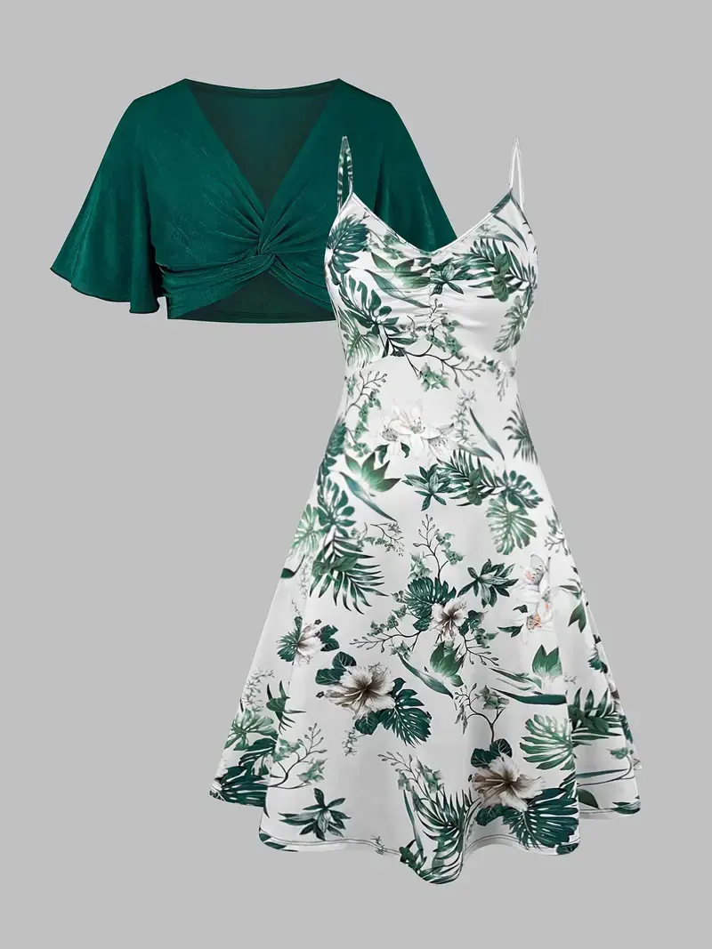 Women's casual suit suit solid color V-neck and plant print