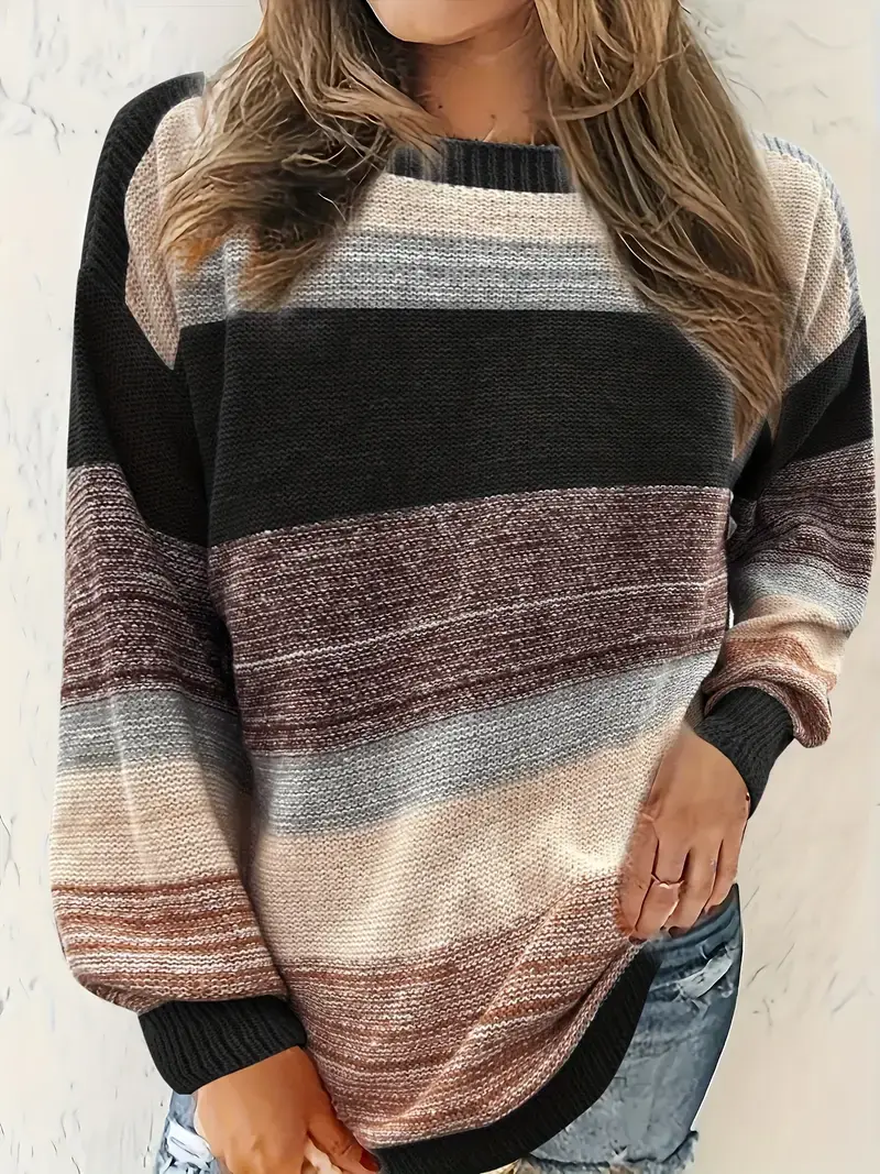 Women's Elegant Color-Block Striped Pullover Sweater