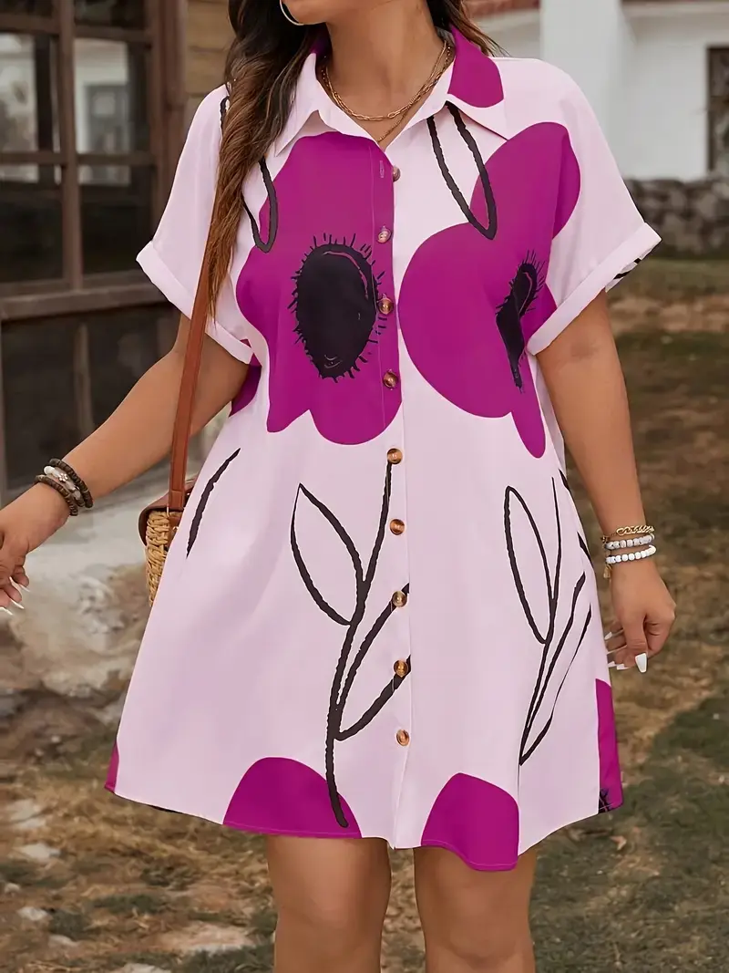 Women'S Floral Print Batwing Short Sleeve Dress