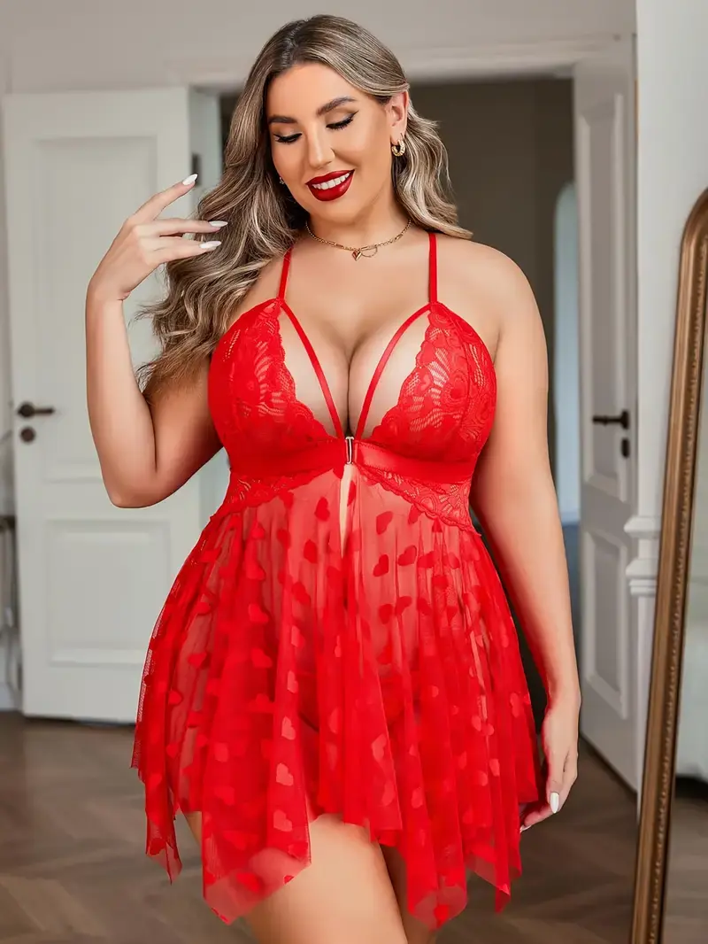 Women's one-piece perspective sexy lingerie front button dress slit lace