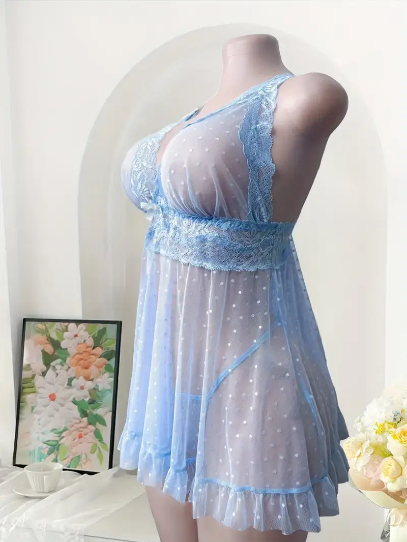 Women's Romantic Sheer Mesh & Lace Trim Sleeveless Clothing